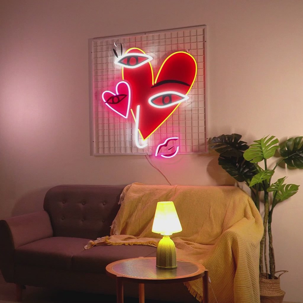 Abstract Face With Hearts LED Neon Sign Light